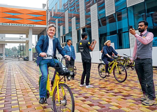 डॉ. फ्रॅंक यांनी महापालिकेत आयुक्ता तुकाराम मुंढे यांची भेट घेतली. त्यांनी नागपूर शहरात कार्ल्सरूह शहरातील वाहनविरहित वाहतूक व्यवस्थेअंतर्गत "पब्लिक बाईक सिस्टीम' प्रकल्प सुरू करण्याबाबत चर्चा केली. यावेळी स्मार्ट सिटीचे सीईओ डॉ. रामनाथ सोनवणे व डॉ. फ्रॅंक यांच्यासोबत आलेले अधिकारी उपस्थित होते. आयुक्तांनी त्यांना शहरातील विविध प्रकल्पांची माहिती दिली. पब्लिक बाईक सिस्टीम प्रकल्प महत्त्वपूर्ण प्रकल्प ठरेल, असा विश्वास आयुक्तांनी व्यक्त केला.