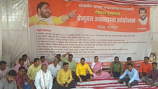 नागपूर : सोयाबीन, कापूस दरात तेजी असतानाच केंद्र सरकारने पोल्ट्री आणि दक्षीणेतील कापड लॉबीच्या दबावाला बळी पडत सोयाबीन पेंड आयातीला परवानगी दिली. त्यानंतर सोयाबीनचे भाव दहा हजारावरुन साडेपाच हजारापर्यंत खाली आले. आता दक्षीणेतील कापड लॉबीच्या दबावाखालील कापसासाठी देखील असेच धोरण राबविण्याच्या तयारीत केंद्र सरकार आहे. शेतकरी विरोधी या धोरणाचा निषेध तसेच सोयाबीन व कापूस उत्पादकांच्या न्याय्य मागण्यांसाठी स्वाभिमानी शेतकरी संघटनेच्या वतीने येथील संविधान चौकात बुधवार (ता.17) पासून बेमुदत अन्नत्याग आंदोलन सुरु करण्यात आले.