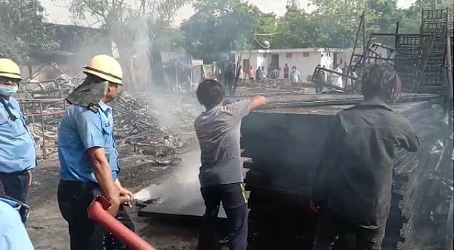 घटनेची माहिती मिळताच अग्निशमन दलाच्या दोन गाड्या घटनास्थळी दाखल झाल्या. शर्थीचे प्रयत्न करून काही वेळानंतर आगीवर नियंत्रण मिळवण्यात अग्निशमन दलाच्या जवानांना यश आलं. मात्र तोपर्यंत संपूर्ण साहित्य जळून खाक झालं होतं.