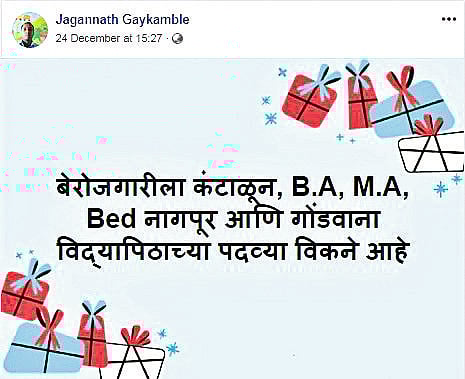 नागपूर : हाती पदवी असताना पैसे खर्च केल्याशिवाय कोणी नोकरी देत नसल्याने निराश झालेल्या एका विद्यार्थ्याने आपली पदवीच चक्क विकायला काढली आहे. चंद्रपूर जिल्ह्यातील केकेझरी गावातील तरुण जगन्नाथ गायकांबळे याने सोशल मीडियावरून आपली पदवी कोणीतरी विकत घ्यावी, असे आवाहन केले आहे.