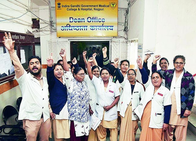 महाराष्ट्र राज्य परिचारिका संघटनेतर्फे पहिल्या टप्प्यातील आंदोलनाला सोमवारपासून सुरुवात झाली आहे. पहिले दोन दिवस दोन तासांचे आंदोलन पुकारण्यात येणार आहे. सोमवारी दोन तास परिचारिकांनी मेयो आणि मेडिकलच्या आवारात निदर्शने केली. आज (मंगळवारी)देखील दोन तासांचे आंदोलन होईल. यानंतर बुधवारी दोन दिवस पूर्ण दिवस काम बंद आंदोलन पुकारण्यात येणार आहे.