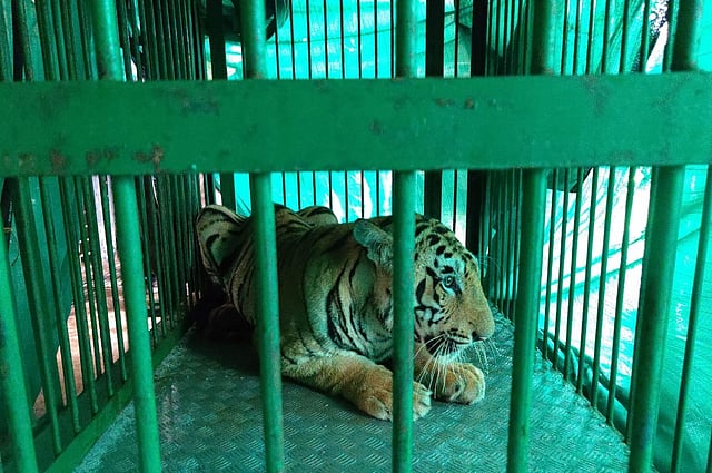 नागपूर : चंद्रपूर जिल्ह्यातील ब्रह्मपुरी वनविभागातील तळोधी वनपरिक्षेत्रात धुमाकूळ घालून तिघांचे बळी घेणाऱ्या एनटी-1 वाघाला वन विभागाच्या कर्मचाऱ्यांनी फक्त पावणे दोन तासात जेरबंद केले. या वाघाला जेरबंद करण्याची परवानगी प्रधान मुख्य वनसंरक्षक (वन्यजीव) नितीन काकोडकर यांना रविवारी सकाळी मुख्य वनसंरक्षकांनी मागितली. रविवारची सुटी आणि वन मुख्यालयात कोरोनाबाधित रुग्ण आढळला असला तरी कर्तव्याला प्राधान्य देत नितीन काकोडकरसह इतरही वनाधिकारी कार्यालयात हजर झाले. सव्वा तीन वाजता वाघाला जेरबंद करण्याची परवानगी व्हॉटसऍपवर मुख्य वनसंरक्षकांना पाठवण्यात आली. त्यानंतर अवघ्या पावणेदोन तासांत वन विभागाच्या कर्मचाऱ्यांनी शिताफीने वाघाला जेरबंद केले.