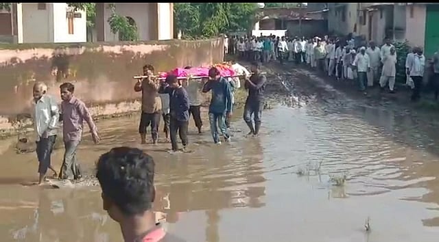गावातील उमाळी येथील वासुदेव रामभाऊ उंबरकर यांचे बुधवारी (दि. 28) वयाच्या 82व्या वर्षी प्रदीर्घ आजाराने निधन झाले. त्यांची अंत्ययात्रा गुडघाभर साचलेल्या पाण्यातून काढावी लागली. अंत्ययात्रेत सहभागी असलेल्या लोकांच्या मुखातून 'राम बोलो भाई राम' ऐवजी तीव्र संताप व्यक्त होत होता. मृतदेहाचा अंत्यविधी उघड्यावरच करण्यात आला. त्यावेळी अचानक पाऊस आल्याने तारांबळ उडाली.