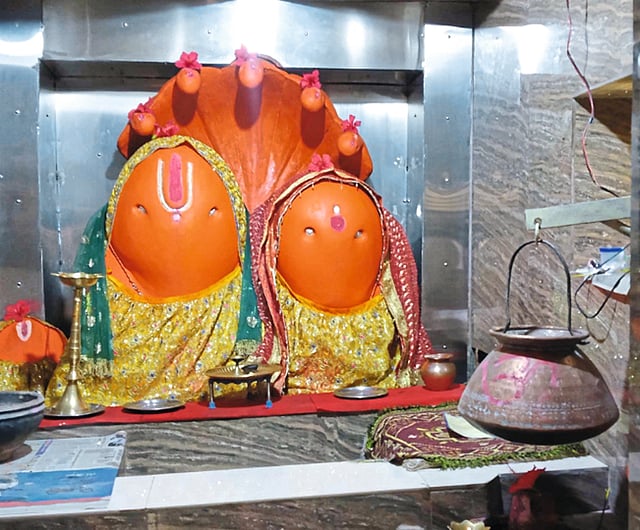 मुख्य दरवाजातून सरळ आत गेल्यास एक हवनकुंड आहे. हवनकुंडाच्या बाजूने काही पायऱ्या चढून वर गेल्यानंतर मंदिर आहे. हे मंदिर तळघरासारखे भासते. तेथे दाराजवळ उजवीकडे हनुमंताची मूर्ती आहे. समोर नृसिंह भगवानाची पाच फूट उंच विशाल मूर्ती दिसते. जवळ खिडकीतून भगवंताच्या मूर्तीवर सूर्यप्रकाश पडून ती अधिक विलोभनीय दिसते. याच मंदिरात गणपती, आदिशक्ती दुर्गा देवी, अन्नपूर्णा देवी यांच्या पुरातन मूर्ती आहेत.