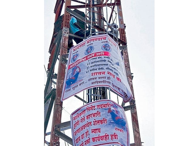 माणिकगड सिमेंट कंपनीच्या अतिक्रमणा विरोधात खाण क्षेत्रातील टॉवरवर चढून आज सोमवारी आदिवासींनी आंदोलन केले. मागील तीन वर्षांपासून त्यांचा लढा सुरू आहे. रात्री उशिरापर्यंत आंदोलनकर्ते पावसात टॉवरवर ठाण मांडून होते. प्रशासनाशी त्यांच्या वाटाघाटी सुरू होत्या. महादेव कुळमेथे, गणेश सिडाम, रामदास मंगाम, जयराम कुळमेथे, सागर येडम अशी टॉवरवर चढलेल्या आदिवासींची नावे आहेत.
