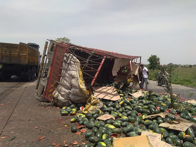 नांदेड वरून चंद्रपूरला टरबूज नेत असलेल्या ट्रकला पुनवट येथे अपघात झाल्याने तो ट्रक उलटला आणि घुघुस मार्गावर टरबूजां चा सडा पडला होता यामुळे शेतकऱ्यांचे 80 हजार रुपयांचे नुकसान झाले आहे