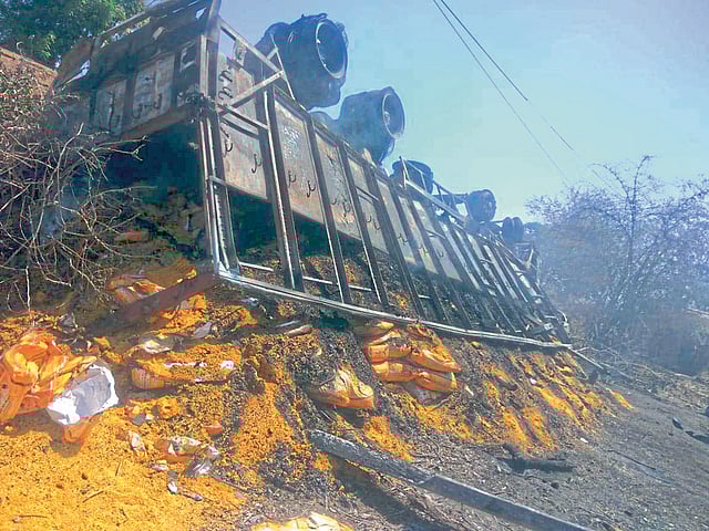 कोरोनाच्या संकटाने देशाचेच काय जगाचेही कंबरडे मोडले आहे. सगळी आर्थिक गणिते विस्कटली आहेत, त्यातच एका अपघातात तुर डाळ जळून खाक झाली आणि आणखी नुकसान झाले.