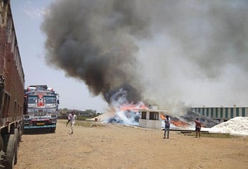 23 ते 25 मेपर्यंत सीसीआयची कापूस खरेदी बंद करण्यात आली आहे. सेलू सुकळी रोडवरील गिरिराज जिनिंग-प्रेसिंगमध्ये दुपारी बाराच्या सुमारास काम सुरू होते. दरम्यान, जिनिंग मोटारीमधून अचानक ठिणग्या निघाल्या आणि सूर्य आग ओकत असताना कापसाने पेट घेतला. त्यातच हवेमुळे ठिणग्या उडून बाहेरच्या दोन कापसाच्या गंजींना आग लागली. पाहता पाहता आगीने रौद्ररूप धारण करीत दोन हजार क्विंटल कापसाच्या दोन गंजा (ढीग) जळून खाक झाल्या. तसेच जिनिंगचे मोठ्या प्रमाणात नुकसान झाले आहे.