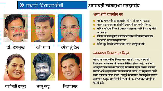 लोकसभा निवडणुकीत सर्वांत जास्त चर्चेत राहिलेला मतदारसंघ म्हणजे मेळघाट. माजी आमदार राजकुमार पटेल यांनी नवनीत राणा यांना साथ देण्याची घोषणा करून विधानसभा निवडणुकीच्या मैदानात उतरण्याचे आपले मनसुबे स्पष्ट केले आहेत. दर्यापूर मतदारसंघात माजी आमदार कॅप्टन अभिजित अडसूळ पुन्हा एकदा रिंगणात उतरतील काय याची उत्सुकता ताणली गेली आहे. लोकसभा निवडणुकीनिमित्ताने ते पूर्णवेळ प्रचारात होते. लोकसभा निवडणुकीत अचलपूरचे आमदार बच्चू कडू यांनी तटस्थ भूमिका घेतली होती. आगामी विधानसभा निवडणुकीच्या दृष्टीनेच त्यांची ही रणनीती होती. दुसरीकडे काँग्रेसचे जिल्हाध्यक्ष बबलू देशमुख यांनी या मतदारसंघात चांगलाच जोर लावला आहे.