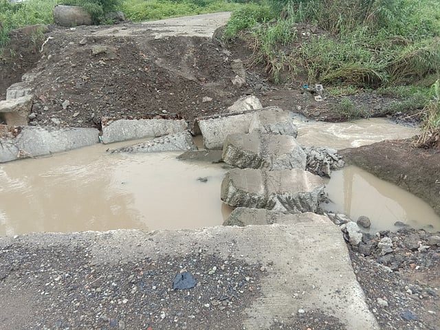 या चारपदरी महामार्गाला जोडणाऱ्या रस्त्यावरील पूल निकृष्ट कामामुळे तीन महिन्यांपूर्वी कोसळला. मुसळधार पाऊस आणि पाण्याचा वेगवान प्रवाह यापुढे निकृष्ट दर्जाचे या पुलाचे बांधकाम टिकू शकले नाही. पूर्वीपासूनच हे बांधकाम निकृष्ट असल्याची ओरड होती. शेवटी त्यावर शिक्कामोर्तब झाले. यामुळे गावातील नागरिकांनी त्या ठेकेदाराला काळ्या यादीत टाकण्याची आणि निकृष्ट कामाकडे दुर्लक्ष करणाऱ्या बांधकाम अधिकाऱ्यांची चौकशी करण्याची मागणी आता जोर धरत आहे.