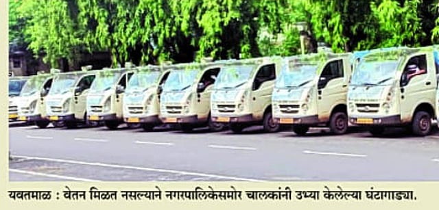 यवतमाळ शहरातील कचरा संकलन करणाऱ्या घंटागाडी या वाहनांवरील चालक व सहायक कर्मचाऱ्यांचे वेतन गेल्या तीन महिन्यांपासून प्रलंबित आहे. त्यामुळे या कर्मचाऱ्यांना आपल्यासह कुटुंबीयांचा गाडा हाकताना आर्थिक कोंडीचा सामना करावा लागत आहे. त्यातच गेल्या तीन महिन्यांपासून भविष्य निर्वाह निधीचा (पीएफ) भरणादेखील करण्यात आलेला नाही. त्यामुळे होणाऱ्या आर्थिक कोंडीतून घंटागाडी वाहनाचे चालक व मदतनीस यांनी हे कामबंद आंदोलन सुरू केले आहे.