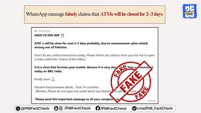 “A viral #WhatsApp message claims ATMs will be closed for 2–3 days.