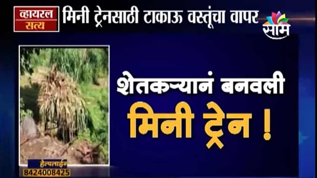 गवताचा भारा नेत असलेली ही आहे मिनी ट्रेन. शेतकऱ्यानं ही स्वत:च घरी मिनी ट्रेन तयार केलीय. हे ऐकून तुम्हालाही विश्वास बसणार नाही. पण, कोल्हापुरातील चिमणे गावचे प्रगतीशील शेतकरी उदय नादवाडेकर यांनी ही ट्रेन बनवलीय. टाकाऊ वस्तूंपासून ही ट्रेन बनवल्यानं शेतीच्या कामात ट्रेनचा खूप उपयोग होतोय. 300 मीटरचं अंतर पार करण्यासाठी या ट्रेनला फक्त 1 मिनीट 40 सेकंद लागतात.