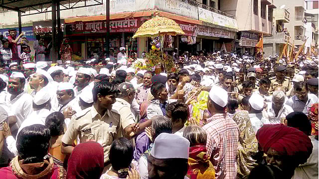 सकाळी अकरा वाजता इनामदारवाड्यातून पालखी पंढरपूरकडे मार्गस्थ झाली. बाजारपेठेत महिलांनी दर्शनासाठी गर्दी केली. ग्रामपंचायत कार्यालयाजवळ ग्रामपंचायत व प्राथमिक आरोग्य केंद्रातर्फे दिंडीप्रमुखांना औषधांच्या किट्सचे वाटप करण्यात आले. एमआयटीतर्फेही वारकऱ्यांचे स्वागत करण्यात आले. दुपारी बारा वाजता अनगडशावली बाबा दर्ग्याजवळ पालखीचे आगमन झाले. परंपरेनुसार तिथे आरती झाली.