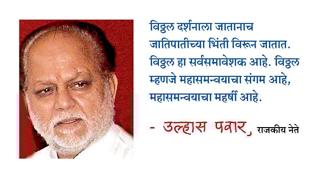 विठ्ठल हे वारकरी संप्रदायाचे तसेच मानवतेचे विद्यापीठ आहे. ते सर्व जाती-धर्मांच्या तत्त्वज्ञानाचे सार आहे. पंढरपूरमध्ये चंद्रभागेत स्नान केल्यानंतर मंदिरासमोर पहिली समाधी चोखोबारायांची आहे, त्यानंतर संत नामदेव महाराज, नंतर कान्होपात्रांची मग विठ्ठलदर्शन होते. वैश्विक मानवतेचे दर्शन विठ्ठलात घडते. आषाढी वारीत मला ते तत्त्व क्षणोक्षणी दिसते. माणसामाणसांत जाणवते. संत ज्ञानेश्वर महाराज यांनी विश्वाच्या कल्याणासाठी प्रार्थना केली. संत तुकाराम महाराज यांनी तर माणसासह कोणत्याही जिवाचा मत्सर घडू नये, असे तत्त्वज्ञान मांडले. सर्वच संतांनी विश्वाच्या कल्याणाचा विचार केला. जगातील सर्व प्रश्नांची उकल विठ्ठलाच्या पायी आहे, संतांच्या विचारात आहे, अशी माझी भावना आहे. त्याच विचारांचा प्रभाव माझ्या जीवनावर कायम राहिला, त्यामुळे जीवनात सुख आणि दुःख समानतेने बघण्याची दृष्टी मला लाभली. समानतेने, बंधुतेने आणि विश्वात्मक भावाने जीवन जगणे हेच खरे विठ्ठलतत्त्व आहे.