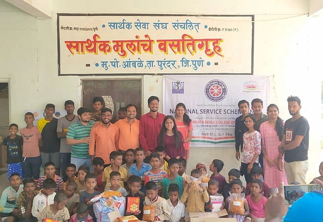 पुणे: दिनांक १० ऑक्टोबर २०२१, सिंहगड टेकनिकल एडुकेशन सोसायतीचे, श्रीमती काशीबाई नवले कॉलेज ऑफ फार्मसी, कोंढवा बु., पुणे या महाविद्यालयातील राष्ट्रीय सेवा योजनेअंतर्गत, दिवाळी सणनिमित्त सार्थक सेवा संघ, आंबळे येथील अनाथाश्रमाला भेट देऊन आपली सामाजिक बांधिलकी म्हणून येथील अनाथ मुलांना विविध फराळाचे खाद्य पदार्थ, अभ्यासासाठी वह्या-पुस्तके तसेच आवश्यक किराणा साहित्य देऊन त्यांची दीपावली गोड करण्याचा प्रयत्न केला.