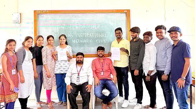 प्रा. जगदीश शेवते आणि प्रा.डी.ए. जाधवर यांच्या हस्ते यिन क्लब च्या विद्यार्थ्याना निवडीचे पत्र देण्यात आले.