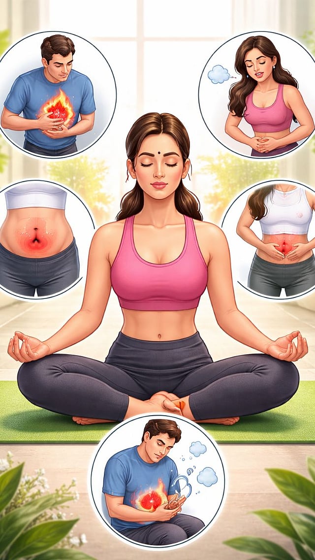 खाण्याच्या चुकीच्या वेळा आणि तेलकट आहारामुळे अनेकदा पोट फुगणे, गॅसेस आणि करपट ढेकर येण्याचा त्रास होतो. त्यासाठी योगासने करणे आवश्यक आहे.