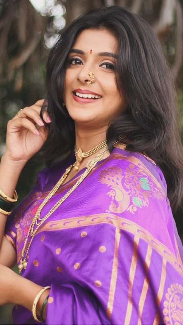 या फोटोंमध्ये शिवानीनं जांभळ्या रंगाची साडी नेसली आहे.