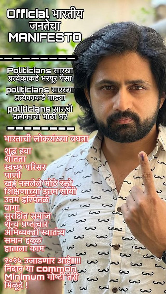 अभिनेता शशांक केतकर मतदान केल्यानंतर एक पोस्ट शेअर केली आहे.