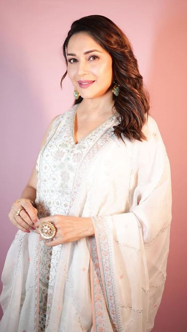 नुकतेच माधुरीने या व्हाईट शरारा सूटमध्ये फोटो शेअर केले आहेत.