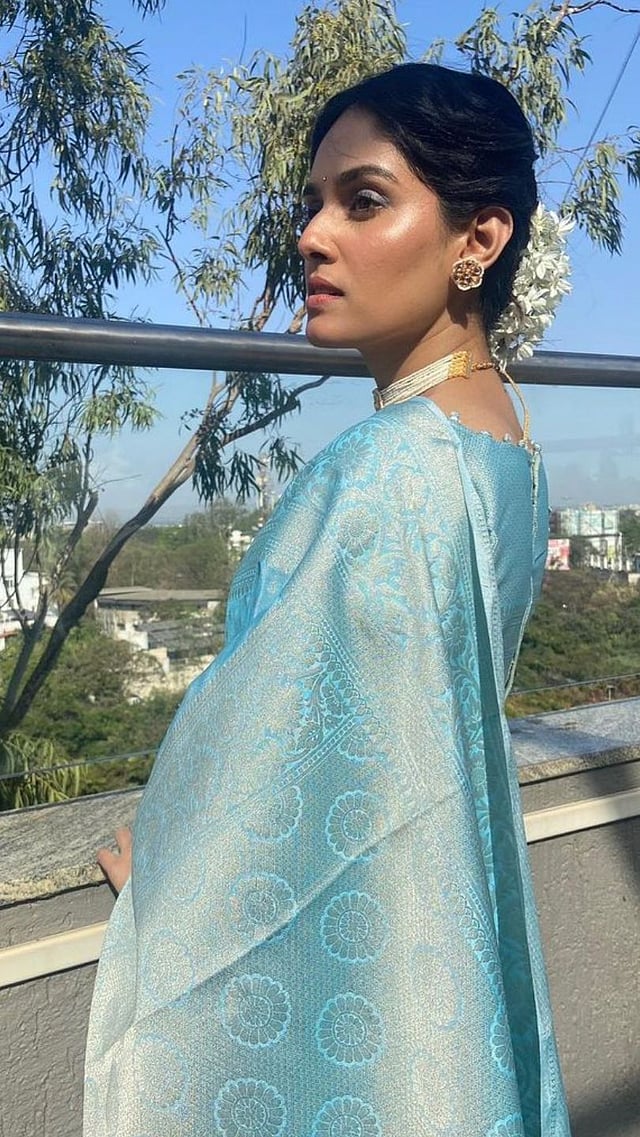 यावेळी तिने फिकट निळ्या रंगाची साडी नेसून फोटोशूट केलं असून तिच्या या रुपावर चाहते फिदा झाले आहेत.
