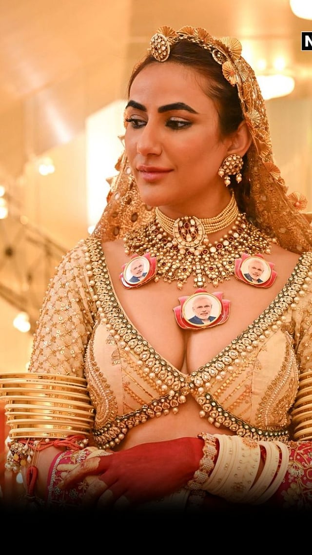 २०२५ च्या कान्स फिल्म फेस्टिव्हलमध्ये अभिनेत्री रुची गुर्जरने रेड कार्पेटवर पंतप्रधान नरेंद्र मोदींच्या प्रेरणेतून तयार केलेल्या नेकलेससह प्रवेश केला, ज्याने उपस्थितांचे लक्ष वेधून घेतले.