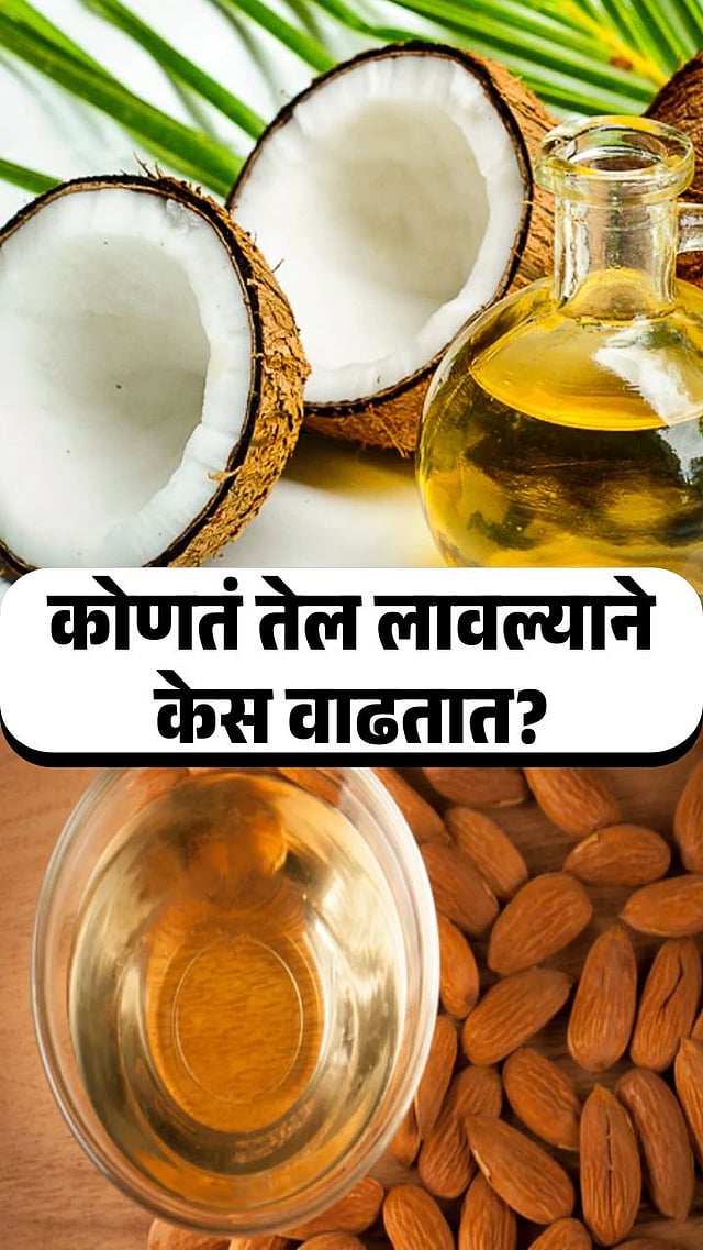 खोबऱ्याचं आणि बदामाचं दोन्ही तेल केसांच्या वाढीसाठी उत्तम आहेत. दोन पैकी कोणतही तेल नियमित वापरल्यास केस लांब, दाट आणि निरोगी होतात.
