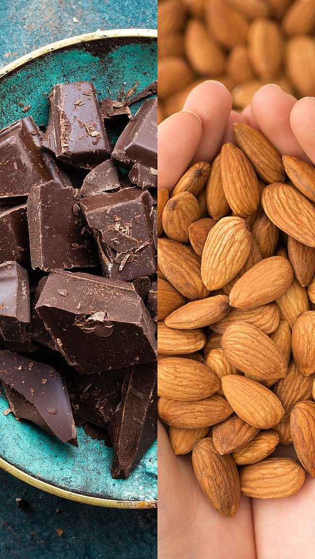 बदाम मॅग्नेशियम, व्हिटॅमिन ई आणि निरोगी चरबीने समृद्ध असतात. तर, डार्क चॉकलेटमध्ये अँटीऑक्सिडंट्स असतात जे मूड सुधारतात आणि हृदयरोगापासून बचाव करण्यास मदत करतात.