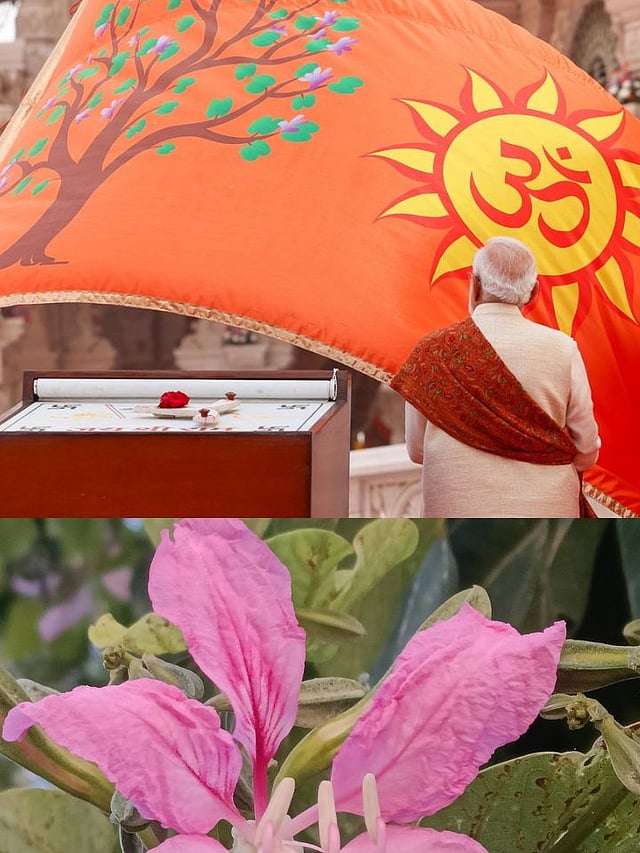 अयोध्या राम मंदिराच्या पूर्णत्वानिमित्त पंतप्रधान नरेंद्र मोदी यांनी मंदिराच्या शिखरावर ध्वजारोहण केले. या धर्मध्वजावर कोविदार वृक्ष आणि सूर्य चिन्ह आहे. कोविदार वृक्षाला कांचनार, कांचन, आपटा अशीही नावे आहेत.