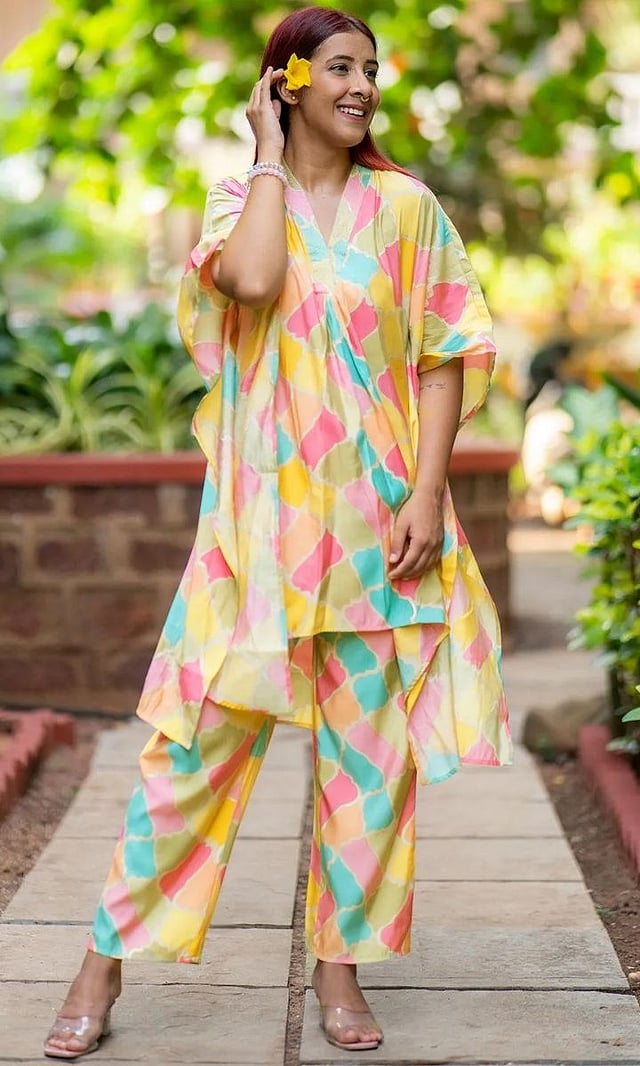 पार्टी किंवा शॉपिंगसाठी लॉंग को-ऑर्ड सेट्स उत्तम. फुल स्लीव्हज, फ्लोइंग पँट्स किंवा मॅक्सी स्कर्टसह स्टायलिश लुक मिळतो.