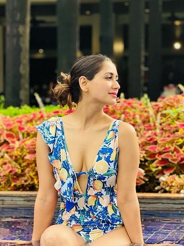 या फोटोंमध्ये निकितानं निळ्या रंगाची मोनोकिनी परिधान केलीय. अभिनेत्रीचा हा लूक चाहत्यांना खूप आवडलाय.
