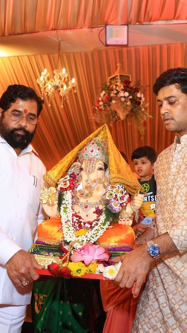 मुख्यमंत्री एकनाथ शिंदे यांच्या मुंबईतील वर्षा निवासस्थानी बॉलीवूडमधील अनेकांनी बाप्पाच्या दर्शनासाठी मुख्यमंत्र्यांच्या निवासस्थानी हजेरी लावली होती.