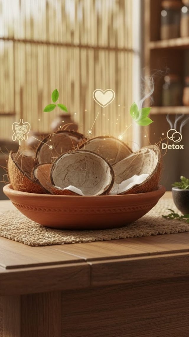 नारळाच्या सालींमध्ये भरपूर फायबर, अँटीऑक्सिडंट्स आणि बायोॲक्टिव्ह घटक आढळतात.