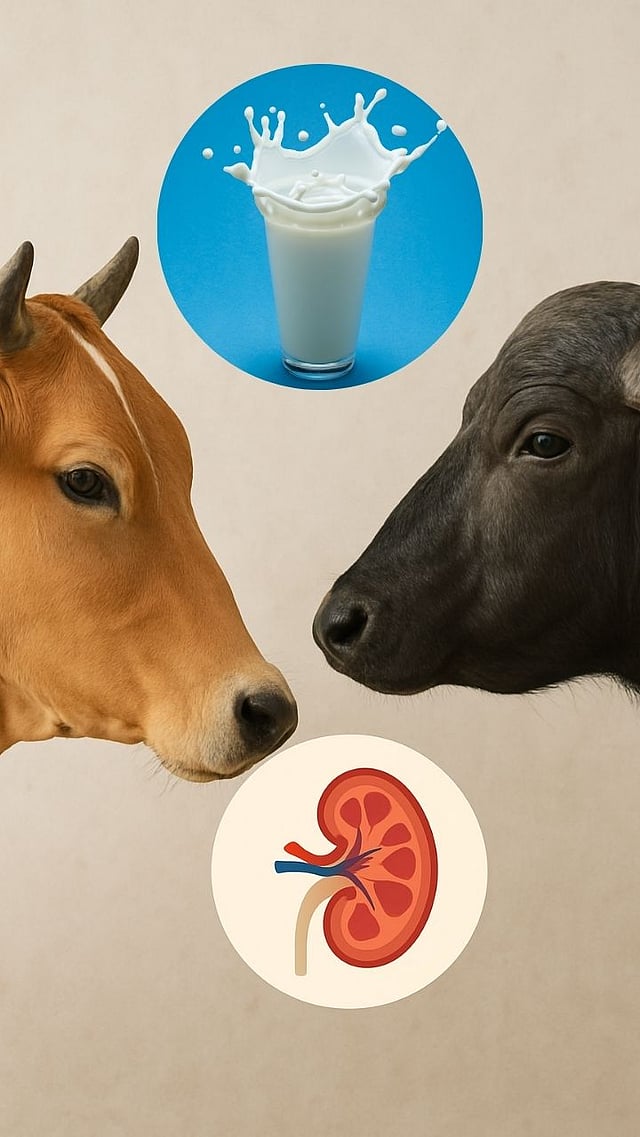 तज्ज्ञांच्या मते, गायीचे दूध हलके असल्यामुळे मूत्रपिंडांवर ताण पडत नाही, तर म्हशीच्या दुधातील जास्त प्रथिने मूत्रपिंडावर भार टाकू शकतात.