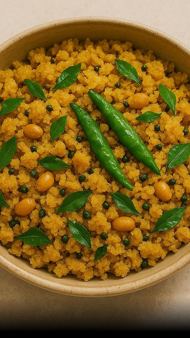 कढईत तेल गरम करून त्यात मोहरी, जिरे आणि कढीपत्ता टाका. मोहरी तडतडल्यावर मिरच्या घाला.