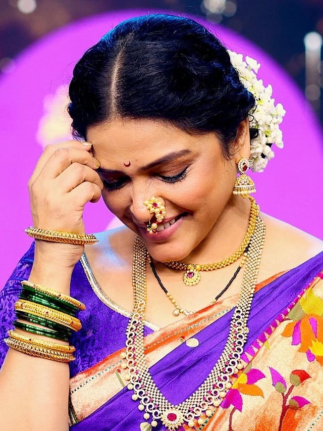 अश्विनीने केसात गजरा आणि दागिने परिधान केले आहेत