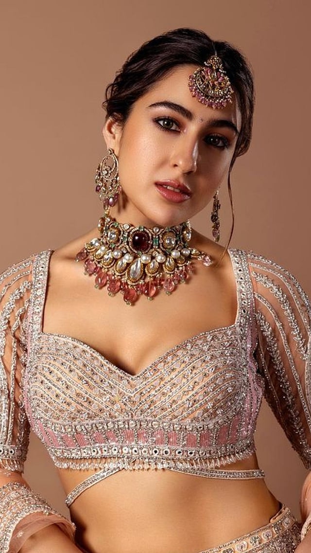 नुकत्याच शेअर केलेल्या फोटोंमध्ये सारा अली खान गुलाबी रंगाच्या लेहेंग्यात दिसत आहे.