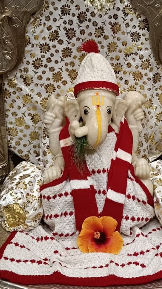 हिवाळा आला की बाप्पाला स्वेटर घालण्याची ही परंपरा अनेक वर्षांपासून सुरू आहे.