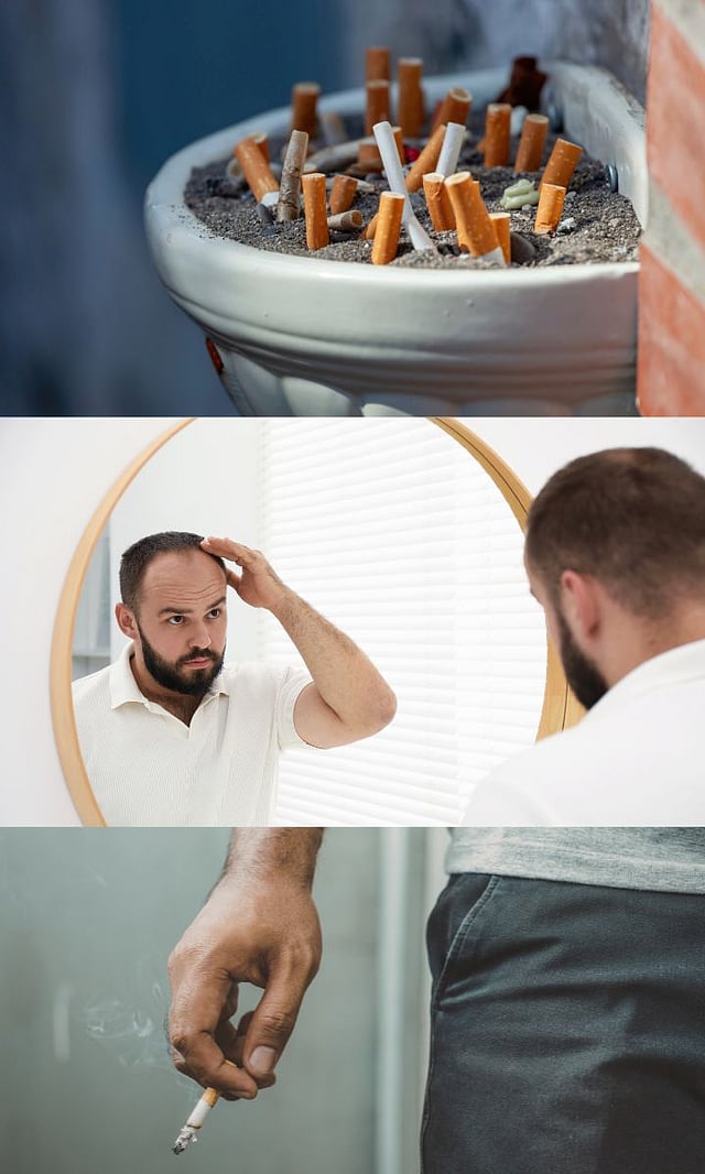 धूम्रपान शरीरात दाहक प्रथिने सक्रिय करू शकते. हार्मोनल संतुलन बिघडू शकते. केसांच्या वाढीचे चक्र नियंत्रित करणारे एंजाइम बदलू शकते. हे सर्व घटक अकाली केस पातळ होणे, टक्कल पडण्यास कारणीभूत ठरू शकतात.