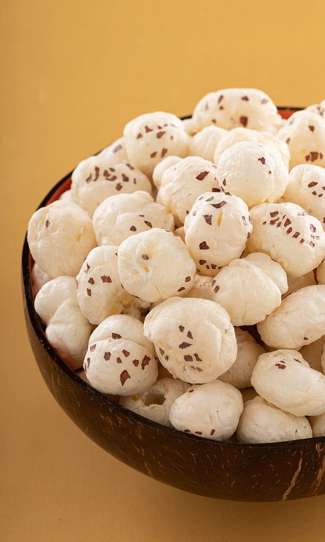 हलका भाजलेला मखाना, सूपमध्ये किंवा ड्राय फ्रूट्ससोबत खा.मखाना फायदे