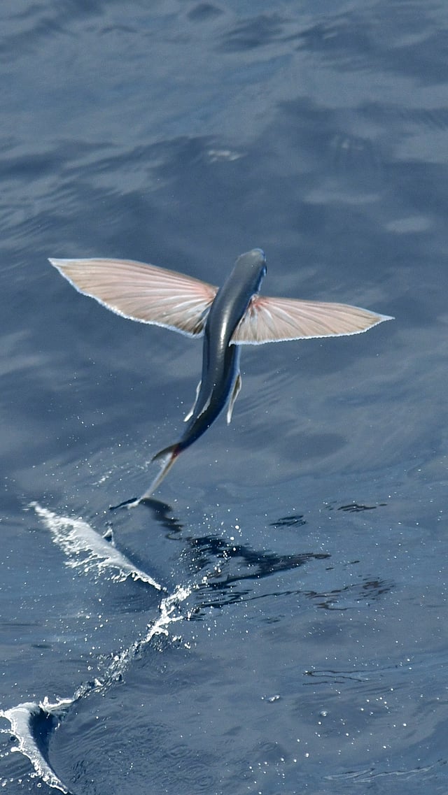 हे मासे केवळ मजेसाठी उडत नाहीत. ट्युना, शार्क किंवा डॉल्फिन यांसारख्या मोठ्या शिकारी माशांपासून स्वतःचा जीव वाचवण्यासाठी ते हवेत उडी मारतात.