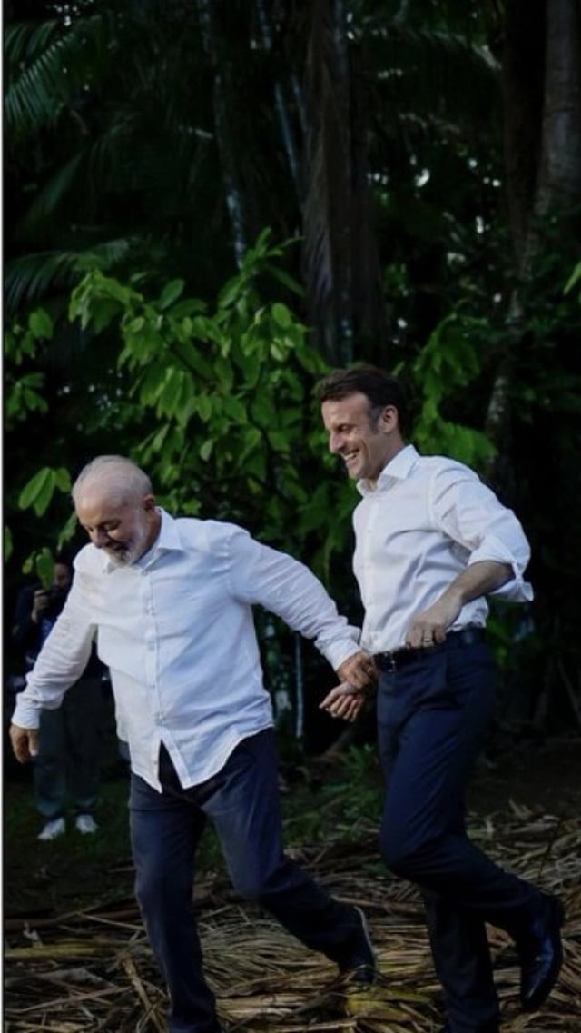 फ्रान्सचे राष्ट्राध्यक्ष इमॅन्युएल मॅक्रॉन सध्या ब्राझील दौऱ्यावर आहेत. ब्राझीलचे राष्ट्राध्यक्ष लुला दा सिल्व्हा यांच्यासोबत त्यांनी एक फोटोशूट केलं.