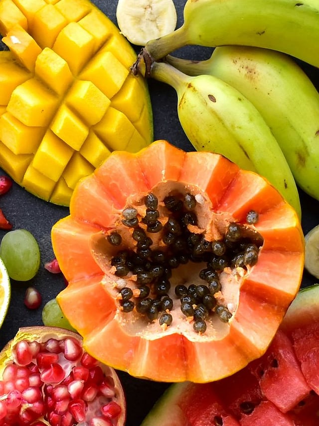 पपईमध्ये फायबर, पोटॅशियम, व्हिटॅमिन B आणि अँटीऑक्सिडंट्स मुबलक प्रमाणात आढळतात. हे पचनसंस्थेस मदत करते आणि साखरेची पातळी संतुलित ठेवण्यास सहायक ठरते.
