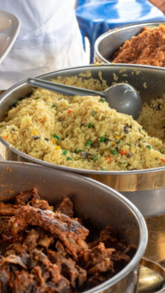 कम्युनिटी किचनच्या वातानुकूलित हॉलमध्ये एका वेळी ३५-४० लोक राहू शकतात. दुपारच्या जेवणात डाळ, भात, चपाती, भाज्या आणि मिठाई असतात.