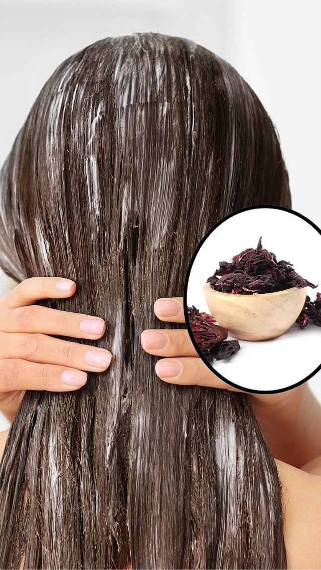 हिबिस्कसचा म्युसिलेज कंटेंट जास्त असल्यामुळे ते केसांना त्वरित हायड्रेशन देतात. फक्त पाण्यासोबत वाटून पेस्ट केसांना लावा.