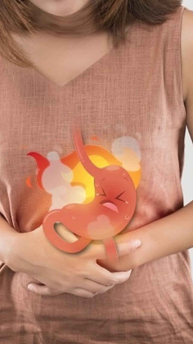 आंबट ढेकर येणे, छातीत जळजळ, पोट फुगणे, उलटी येणे ही लक्षणे आहेत.