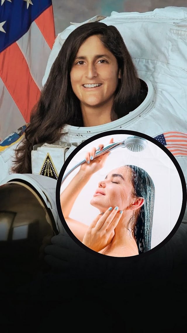 अंतराळ स्थानकात (International Space Station - ISS) गुरुत्वाकर्षण नसल्यामुळे पारंपरिक पद्धतीने अंघोळ करणे शक्य नसते.