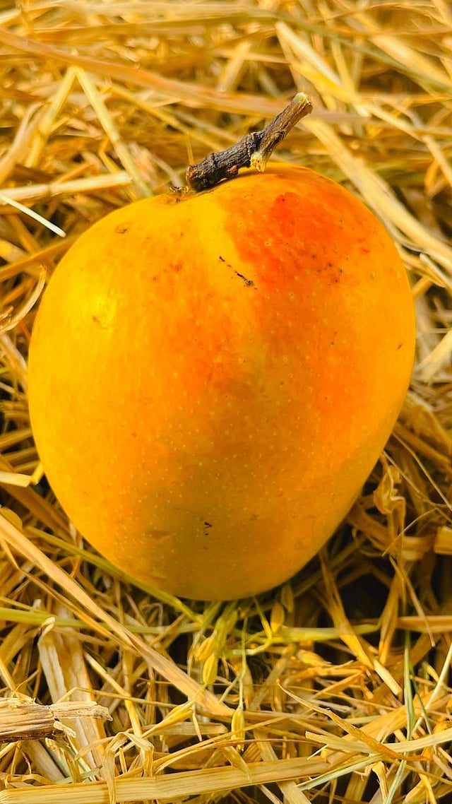 नैसर्गिकरित्या पिकलेला अस्सल हापूस आंबा हा खालच्या टोकाशीसुद्धा गोलाकार आणि वजनदार असतो.