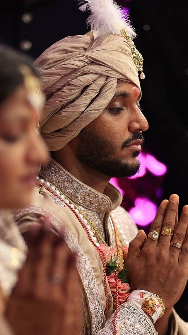 चेतनच्या लग्नाच्या फोटोत जयदेव उनाडकट दिसत आहे आणि त्याने चेतनला आयुष्याच्या नव्या स्पेलसाठी शुभेच्छा दिल्या.